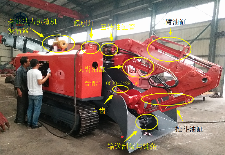 扒渣機除了扒取物料外,還可以在狹窄工作環境有限制的地方,通過它的輸送帶直接將扒取的物料傳輸到裝載車輛上,挖掘機做不到的。